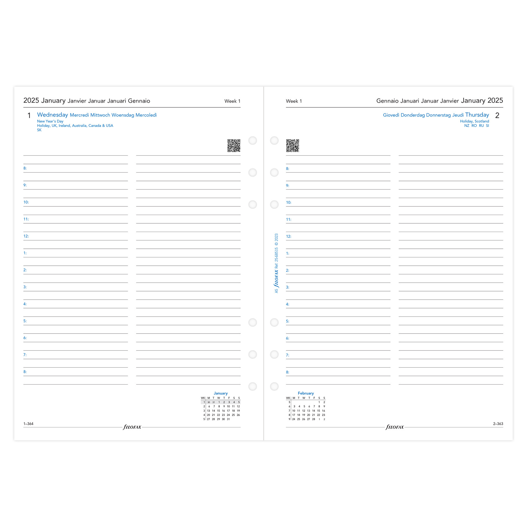 Filofax, Kalendář 2025 A5, den/1 strana, 5 jazyků