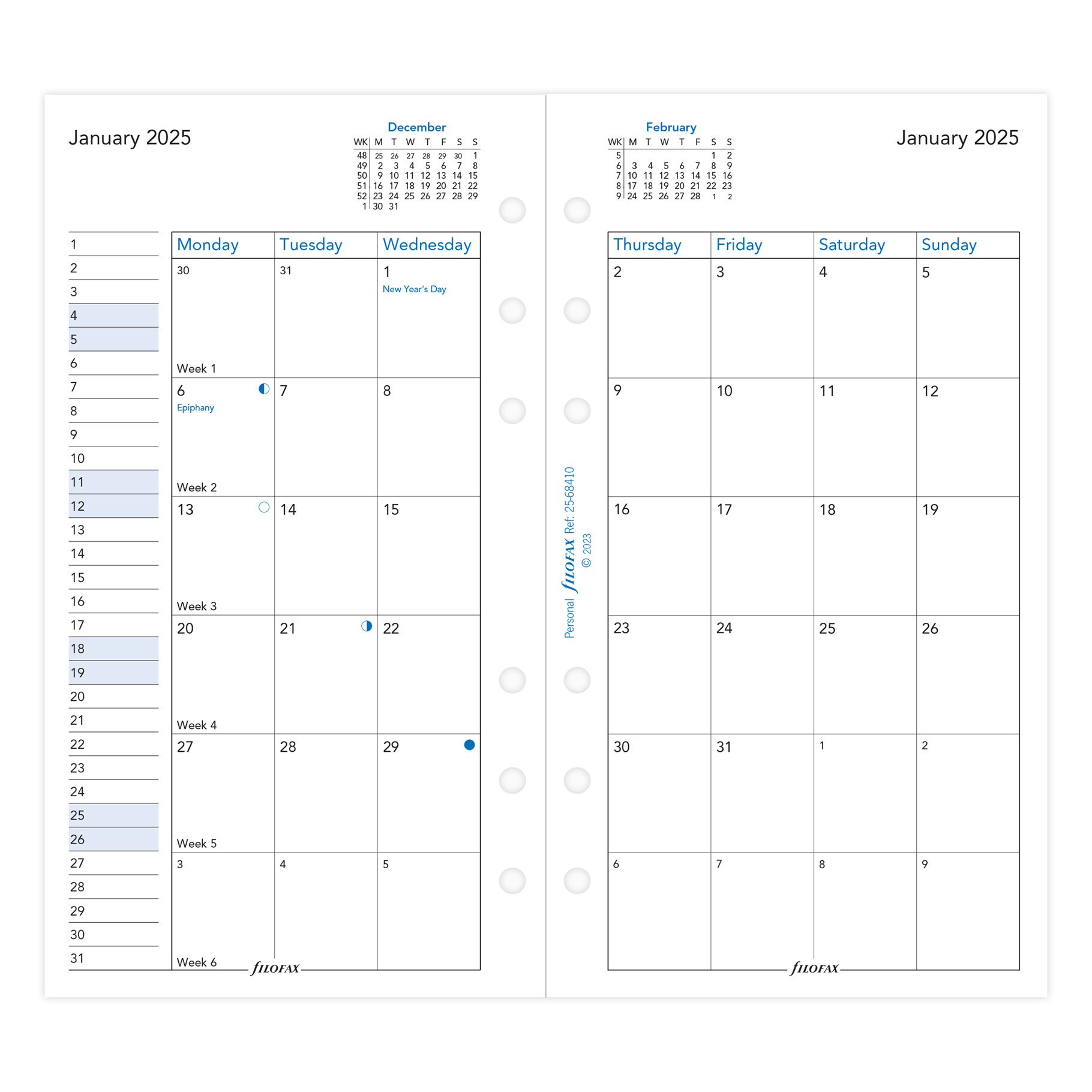 Filofax, Kalendář 2025 osobní, měsíc/2 strany, tabulka, AJ