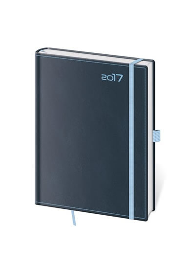 Diář 2017 - Double Blue/týdenní B6 s gumičkou a poutkem na tužku