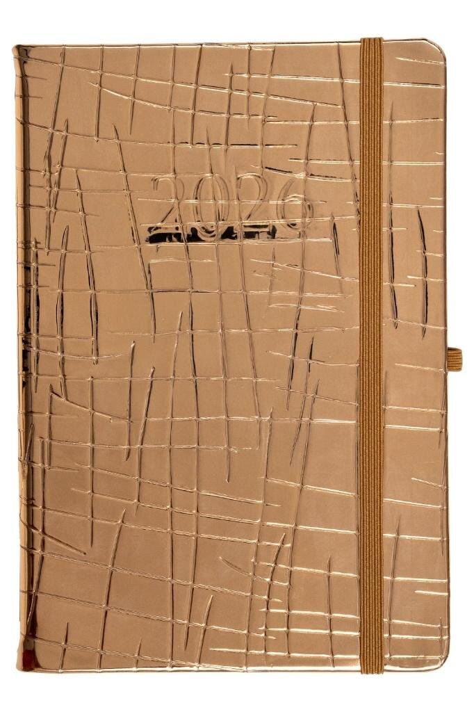 format A5 z tygodniowym układem środka kalendarza )papier: delikatne chamois 80 g/m2ilość stron: 178oprawa: twarda wykonana z wysokiej jakości materiału imitującego materiał zamszowyzamykany na gumkę w kolorze oprawygumka na długopis w kolorze oprawyzaokrąglone narożniki opraw i strondwie...