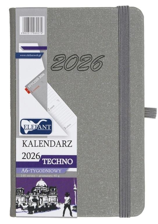 Kalendarz 2026 A6 tygodniowy Techno szary