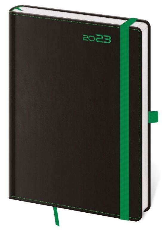 Diář 2023 Black Green/týdenní A5 s poutkem na propisku