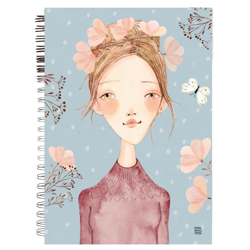 Tento krúžkový blok má rozmery 13,5 x 19 cm a ponúka pohodlných 140 strán pre vaše nápady a sny. Špirálová väzba v medenej farbe zabezpečuje ľahké otváranie a písanie bez obmedzení. Okrúhle rohy a mäkké dosky s matným laminom sú ozdobené originálnou ilustráciou, ktorá dodáva celému zápisníku jedinečný štýl. Vnútorné dosky v kontrastnej ružovej farbe s bodkami zároveň chránia vaše poznámky a vnášajú do práce radostnú atmosféru. Prvá strana je umelecky zdobená, na rozdiel od ostatných čistých bielych listov, ktoré čakajú len na vaše písanie, kresby či vlepovanie spomienok.