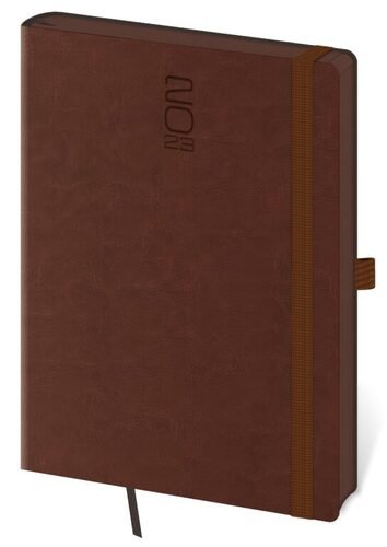 Diář 2023 denní A5 Memory s gumičkou - tmavě hnědá