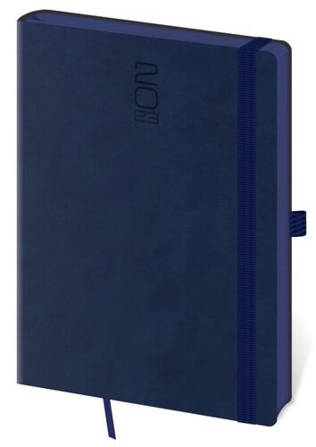 Diář 2023 týdenní A5 Memory s gumičkou - tmavě modrá
