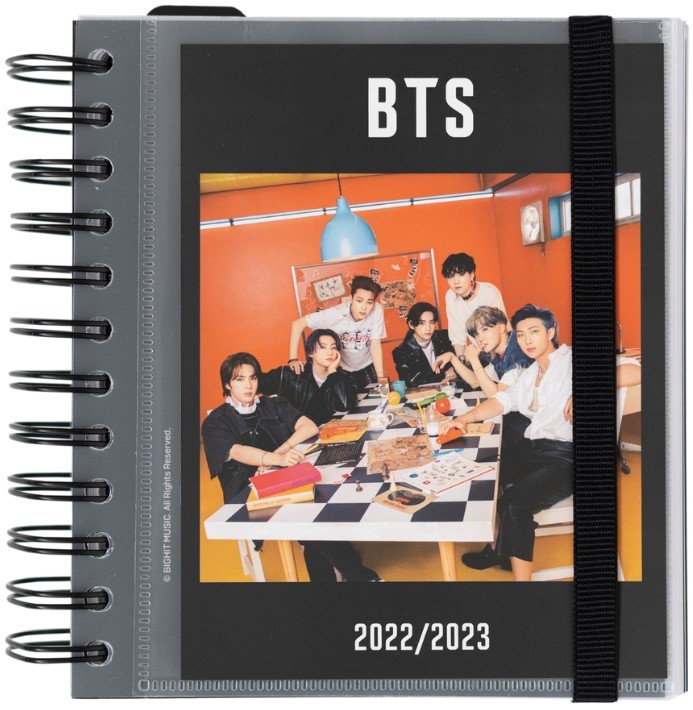 Oficiální 11měsíční školní diář v kroužkové vazbě na rok 2022/2023 z katalogu kancelářských a dárkových produktů s grafikou, motivem a licencí populárního sedmičlenného boy bandu z Jižní Koreje jménem BTS.Zboží je legálně licencováno a prodáváno se souhlasem vlastníků licenčních práv.Plánovací...