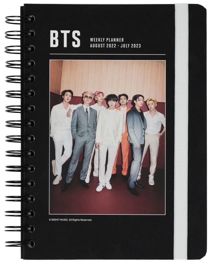 Oficiální A5 12měsíční školní diář v kroužkové vazbě na rok 2022/2023 z katalogu kancelářských a dárkových produktů s grafikou, motivem a licencí sedmičlenného boy bandu BTS z Jižní Koreje založeného společností BigHit Entertainment. Zboží je legálně licencováno a prodáváno se souhlasem vlastníků...
