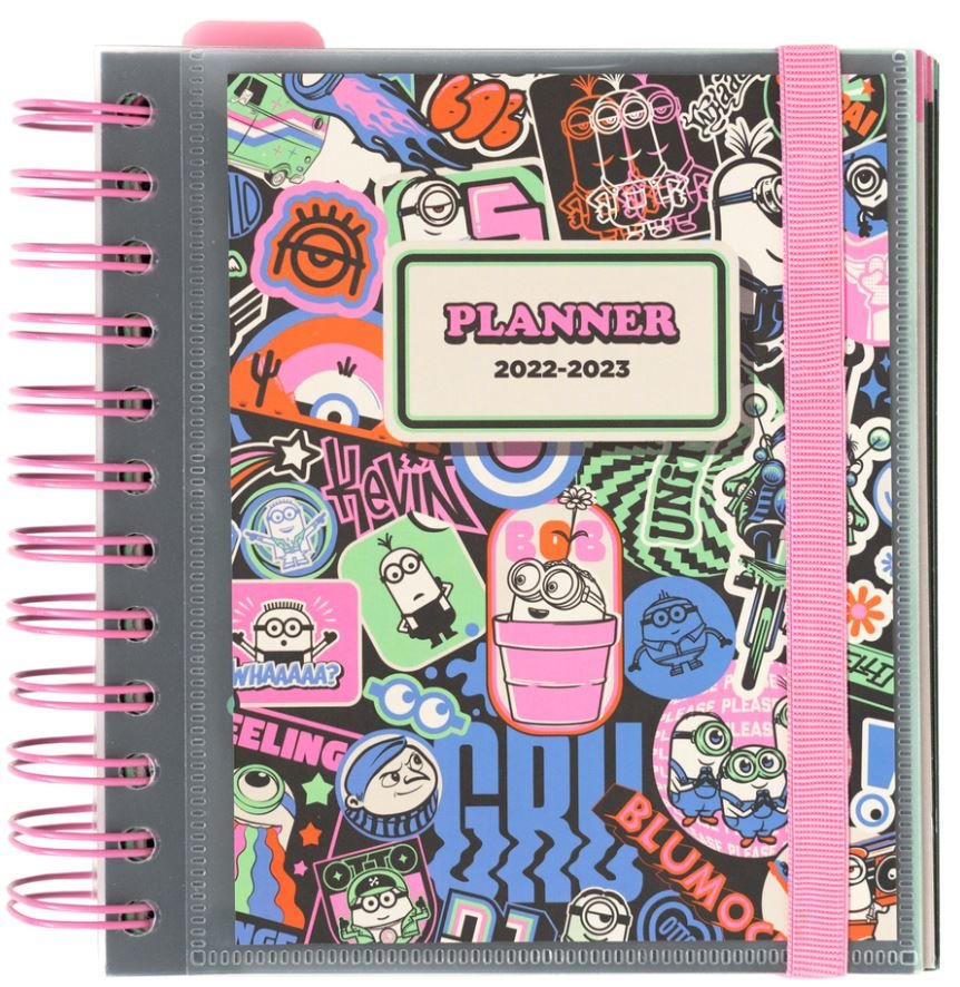 Plánovací denní školní diář 2022/2023 Minions|Mimoni se samolepkami, záložkami a obálkou (14 x 16 cm)
