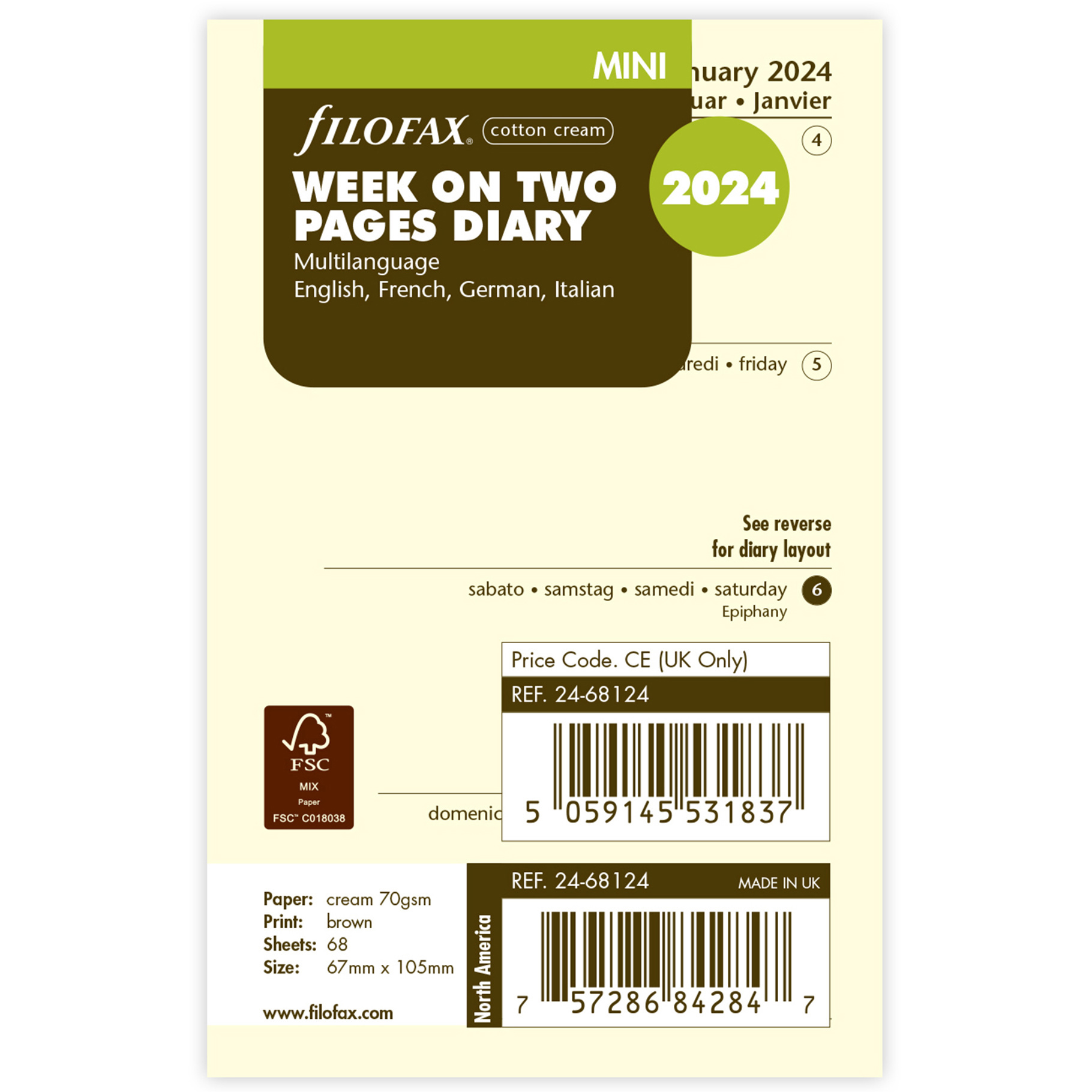 Filofax, Kalendář 2024 mini, týden/2 strany, krémová, 4 jazyky
