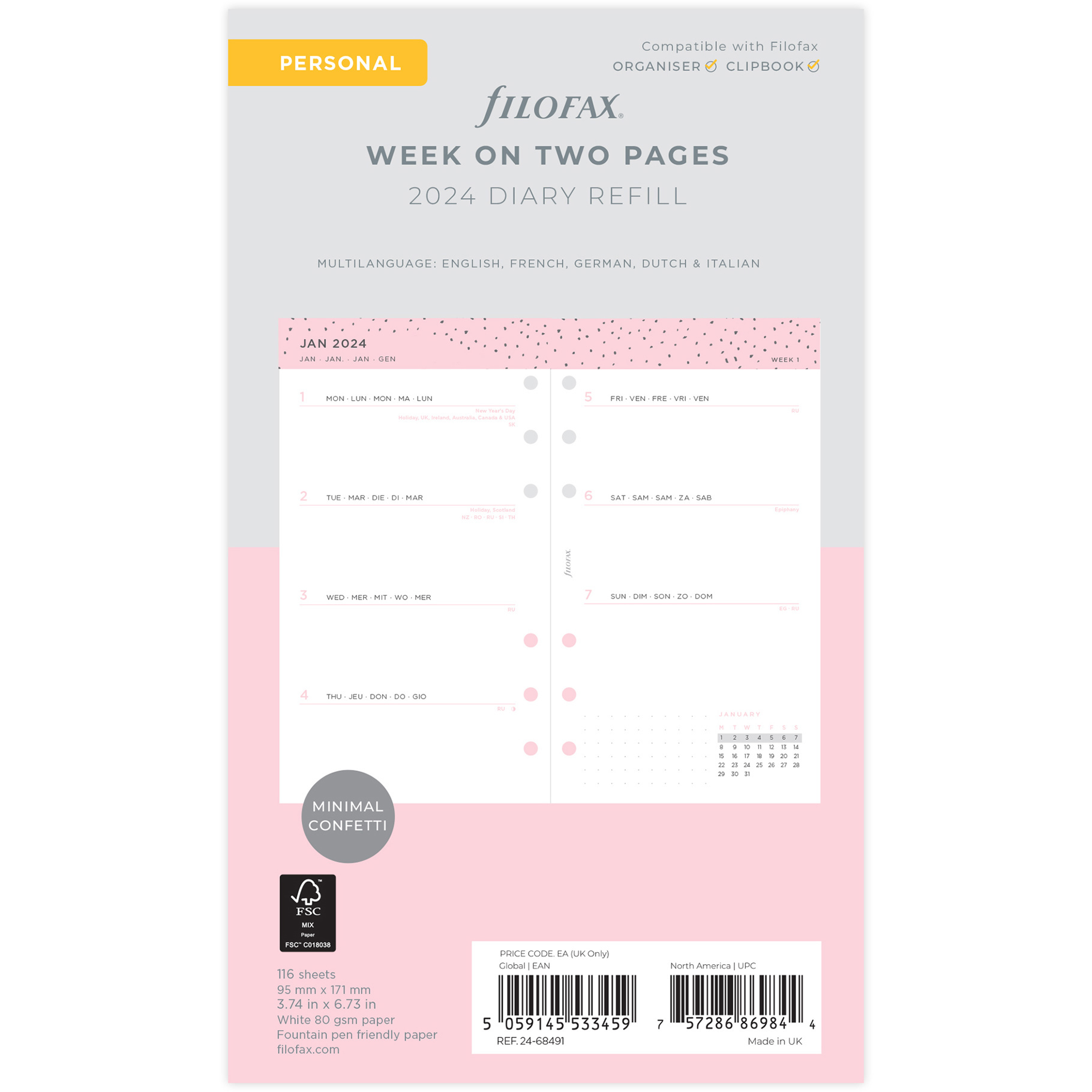 Filofax, Diářový set Confetti 2024, Osobní