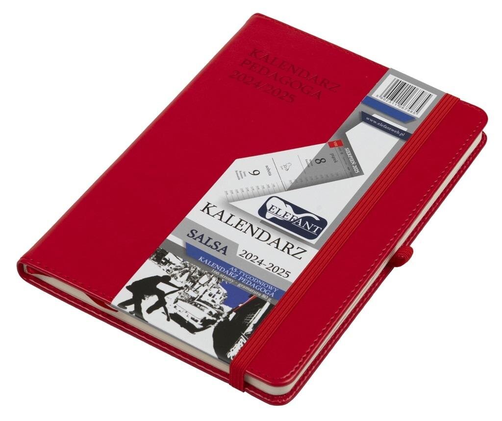 Salsa: KALENDARZ PEDAGOGA 2024-2025format: A5oprawa: twarda wykonana z wysokiej jakości materiału skóropodobnegokolor: czerwonyoprawa przeszyta delikatną nicią w kolorze czerwonymzamykany na gumkę w kolorze czerwonymgumka na długopis w kolorze czerwonymzaokrąglone narożniki opraw i strondwie...