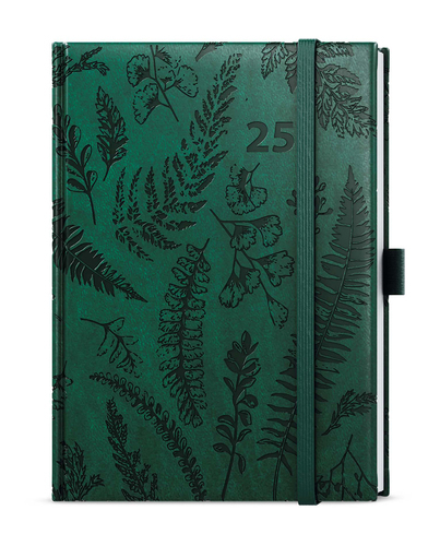 Diář v zelené vivelle s krásnou celoražbou motivu Kapradí. Diář v B6 formátu s velkým prostorem pro poznámky a plánování. prečítať celé