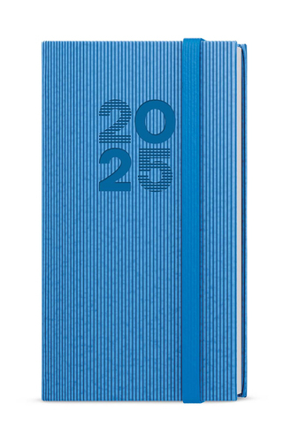 Kapesní týdenní diář v modré barvě ze strukturovaného materiálu a s gumičkou. Jednoduchost, která neomrzí. Moderní doplněk do každé kapsy. Diář má velký prostor pro poznámky a plánování. prečítať celé