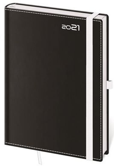 Diář 2021: Black&White, A5 denní, 145x205, s poutkem na propisku