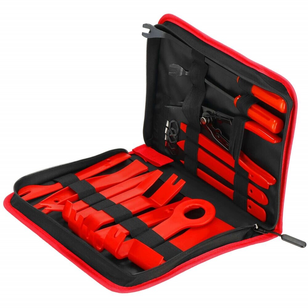 Víceúčelová sada nářadí a pomůcek pro bezpečnou demontáž jakéhokoliv typu čalounění. Sada obsahuje 18 ks speciálně navržených a profilovaných nástrojů, které jsou šetrné k povrchu a nepoškodí ho. Perfektní pro každého kutila, autodílnu, servis, čalounictví, klempíře nebo lakovnu.Multifunkční...