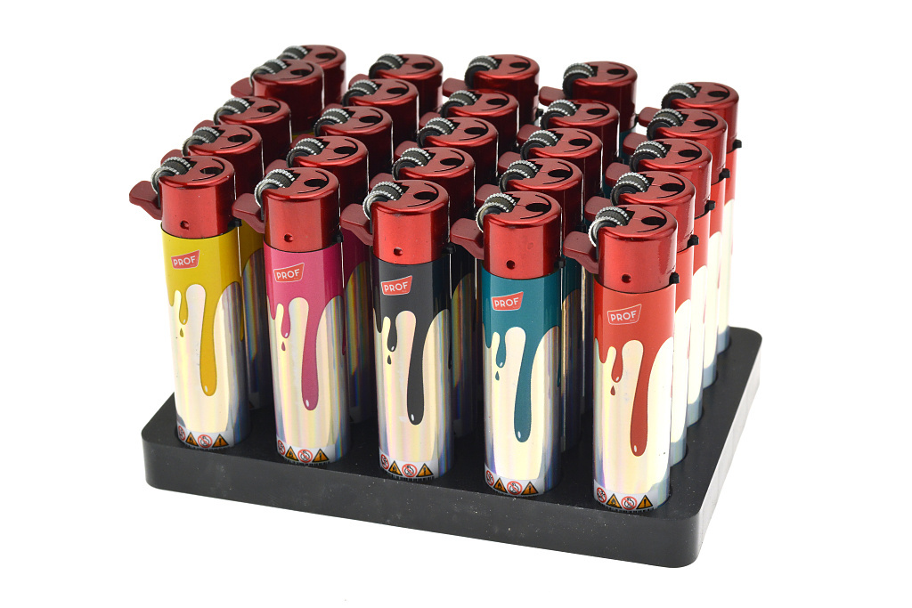 PROF plnící zapalovače s metalicky holografickým efektem. Balení obsahuje 25 ks zapalovačů. prečítať celé