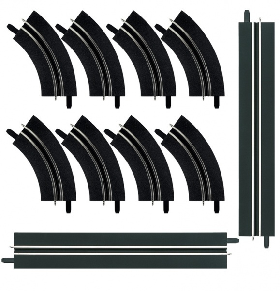 Rozšiřující set pro autodráhy GO!!!, GO!!!Plus a Digital 143. V balení je - 8 dílů zatáček jednodráhy - 4 rovinky 342mm prečítať celé