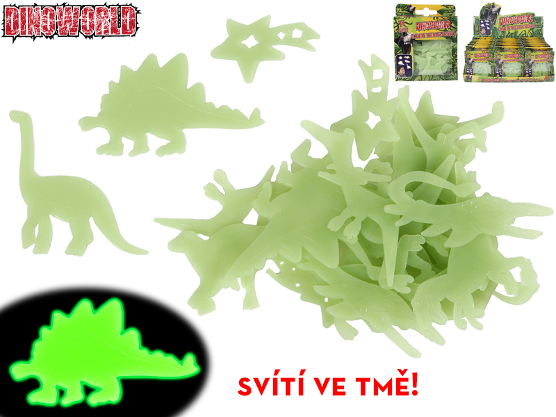 Dinoworld dinosaurus nálepky svítící ve tmě 24ks v krabičce (1 balení)