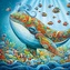 Magický motiv: Nádherná ilustrace velryby jako krále moří s korunou na hlavě vás okouzlí svou originalitou a fantazií.