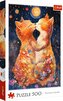 Puzzle Pocałunek w świetle księżyca składają się z 500 elementów i przedstawiają dwa całujące się kotki. Gotowa układanka ma wymiary 480x340 mm.