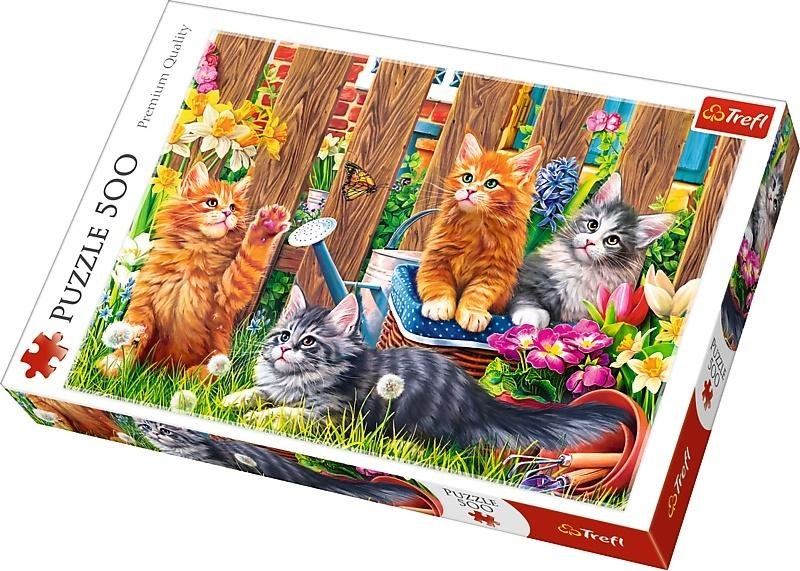 Puzzle 500 elementów - Kotki w ogrodzie.Wymiar obrazka: 48 x 34 cm. prečítať celé