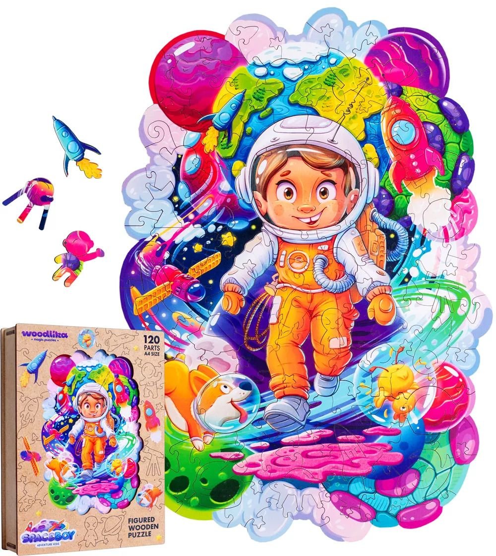 DŘEVĚNÉ BAREVNÉ PUZZLE - Vesmírný dobrodruh