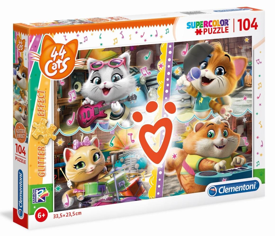 Puzzle wysokiej jakości marki Clementoni 104 brokatowe elementy, przedstawiające postaci z bajki 44 koty. prečítať celé