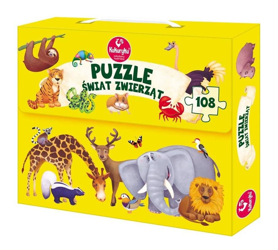 Świat zwierząt to puzzle przeznaczone zarówno dla najmłodszych jak i starszych dzieci - fanów układania. Puzzle składają się ze 108 elementów, na których przedstawiona jest bajecznie kolorowa mapa świata, ze zwierzętami zamieszkującymi poszczególne rejony.