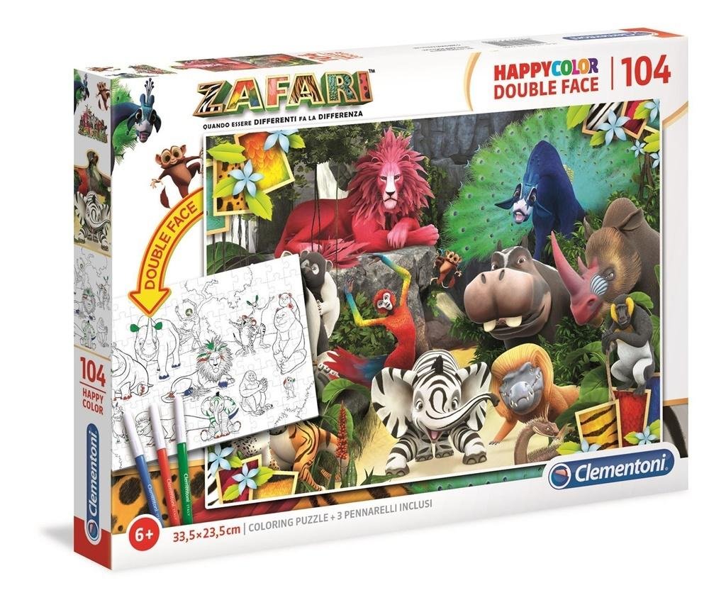 Wysokiej jakości Puzzle Happy Kolor Double Face Zafari cenionej marki Clementoni, składające się ze 104 elementów. Wymiary obrazka po ułożeniu 33,5x23,5 cm prečítať celé