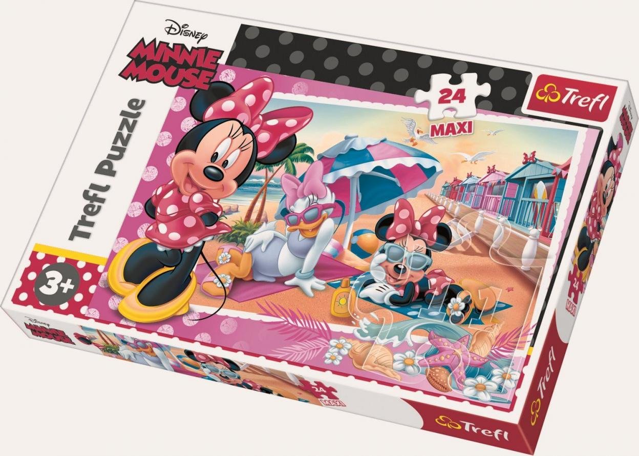 Puzzle składające się z 24 bardzo dużych elementów, zaprojektowaną z myślą o wszystkich fanach i fankach Myszki Minnie. Po ułożeniu układanki powstanie duży obrazek, o wymiarach 600x400mm.