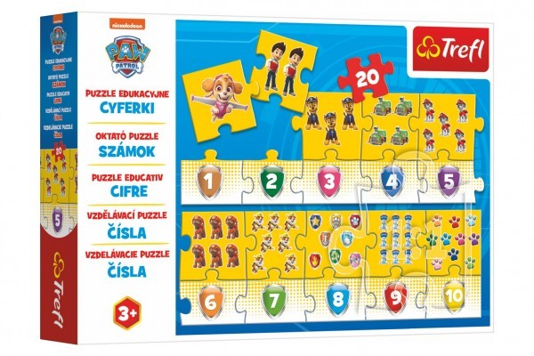 Puzzle vzdelávacie Čísla Tlapková patrola / Paw Patrol 20 dielikov 117x19, 5cm v krabici 33x23x6cm