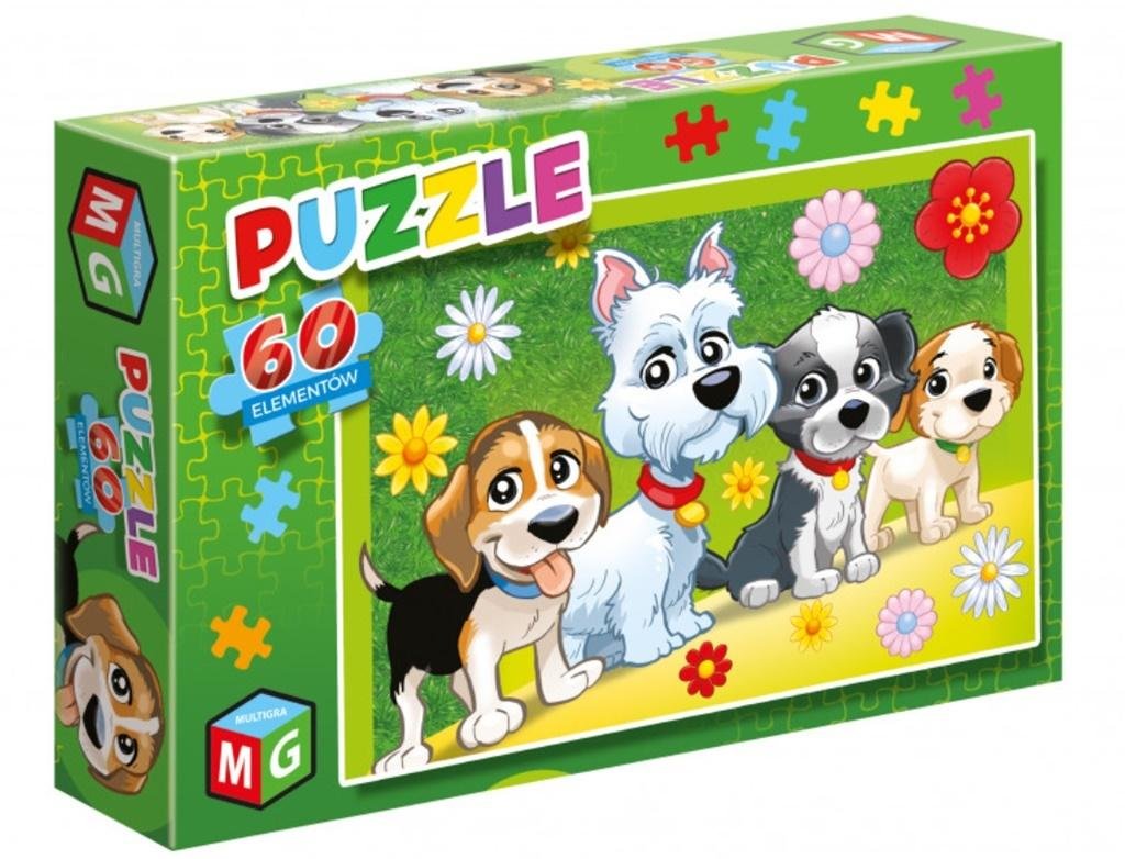 Puzzle rozwijają zdolności manualne, pobudzają ciekawość, spostrzegawczość oraz zdolność kojarzenia. Układanie puzzli to dla dzieci dobry trening zręczności, myślenia, percepcji i właściwego kojarzenia koloru i kształtu. Z 60 elementów układanki można ułożyć obrazek o wymiarach 33 x 22 cm. Zawartość pudełka: Puzzle - 60 szt.
