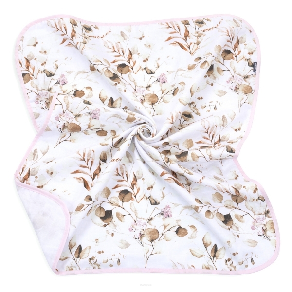 Mušelínová oboustranná deka/dečka Eukalypt, bílá/béžová