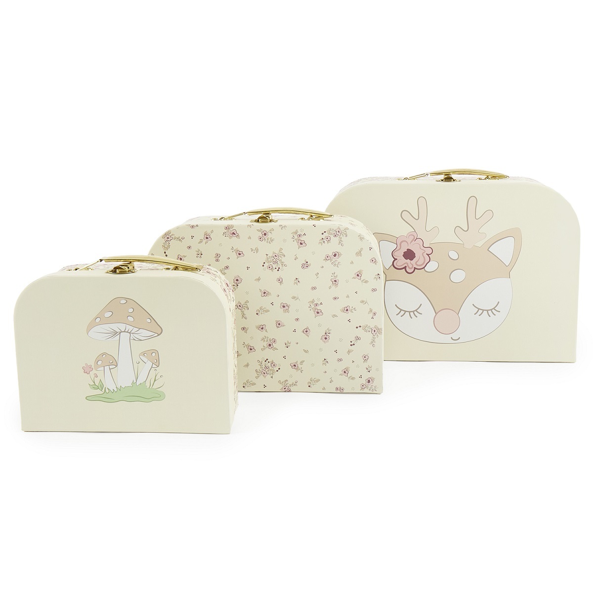Sada tří kartonových kufříků je skvělým doplňkem do dětského pokoje i praktickým společníkem na cesty. S nádhernými květinovými vzory a motivem kolouška Elly okouzlí všechny malé dobrodruhy. Pevné kartonové kufříky mají odolnou kovovou sponu a pohodlnou rukojeť. Jsou ideální pro ukládání dětských...
