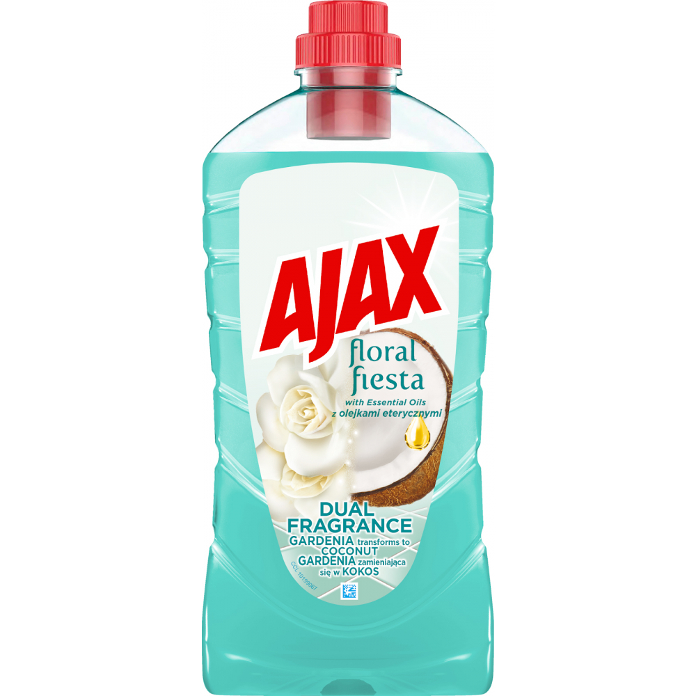 Ajax Floral Fiesta spája účinnosť s prírodnými esenciálnymi olejmi, ktoré zabezpečia nielen žiarivo čistý domov, ale aj dlhotrvajúcu príjemnú vôňu gardénie a kokosu. Po upratovaní vôňa vydrží až 24 hodín a umožní vám užívať si sviežosť, ktorá sa počas dňa príjemne mení - zo sladkej gardénie na jemný exotický kokos. Tento univerzálny čistič je vhodný pre všetky povrchy v domácnosti a uľahčí vám upratovanie aj odstraňovanie odolných škvrn.