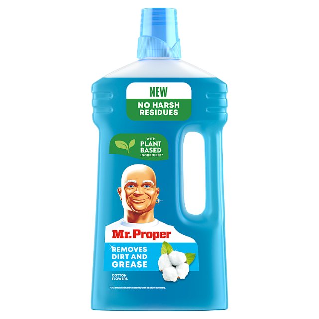 Odrážky Univerzální čisticí prostředek určený k čištění podlah a velkých plochSložení s bezpečnou hodnotou pHLze jím čistit lakované dřevo i laminátOdstraňuje mastné skvrny a další nečistotyPříjemná parfemace oceánuPopis PopisMr. Proper je přípravek pro rychlé a snadné umývání podlah a velkých...