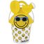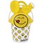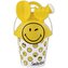 Smiley set obsahuje: kyblík, konvičku 0,5 l, lopatku a hrabičky. Kyblík má průměr 17 cm.