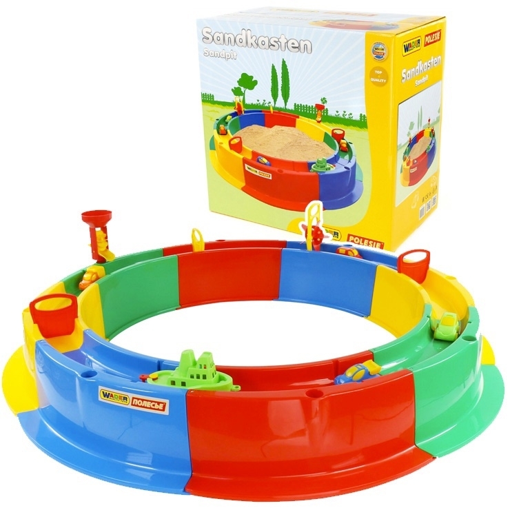 Pískoviště 1360 s doplňky, v balení jsou vyobrazeny části po složení s rozměry 136 x 136 x 18 cm. Ve vrchní části obvodu pískoviště je kanál s loďkou, vodním mlýnem, ručním mlýnem, 4 auty a zábranami. Vyrobeno je ve vynikající kvalitě značky Wader qality toys. prečítať celé