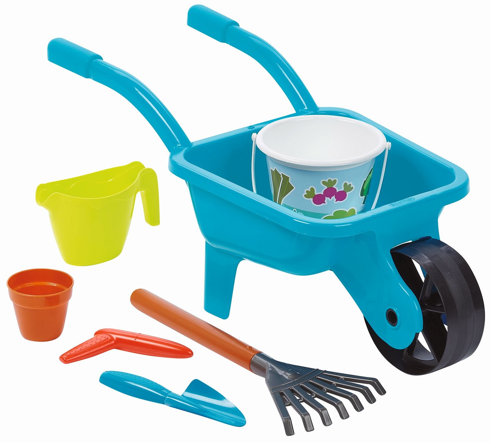 Zahradní kolečko s konvičkou, kyblíčkem a přísl.