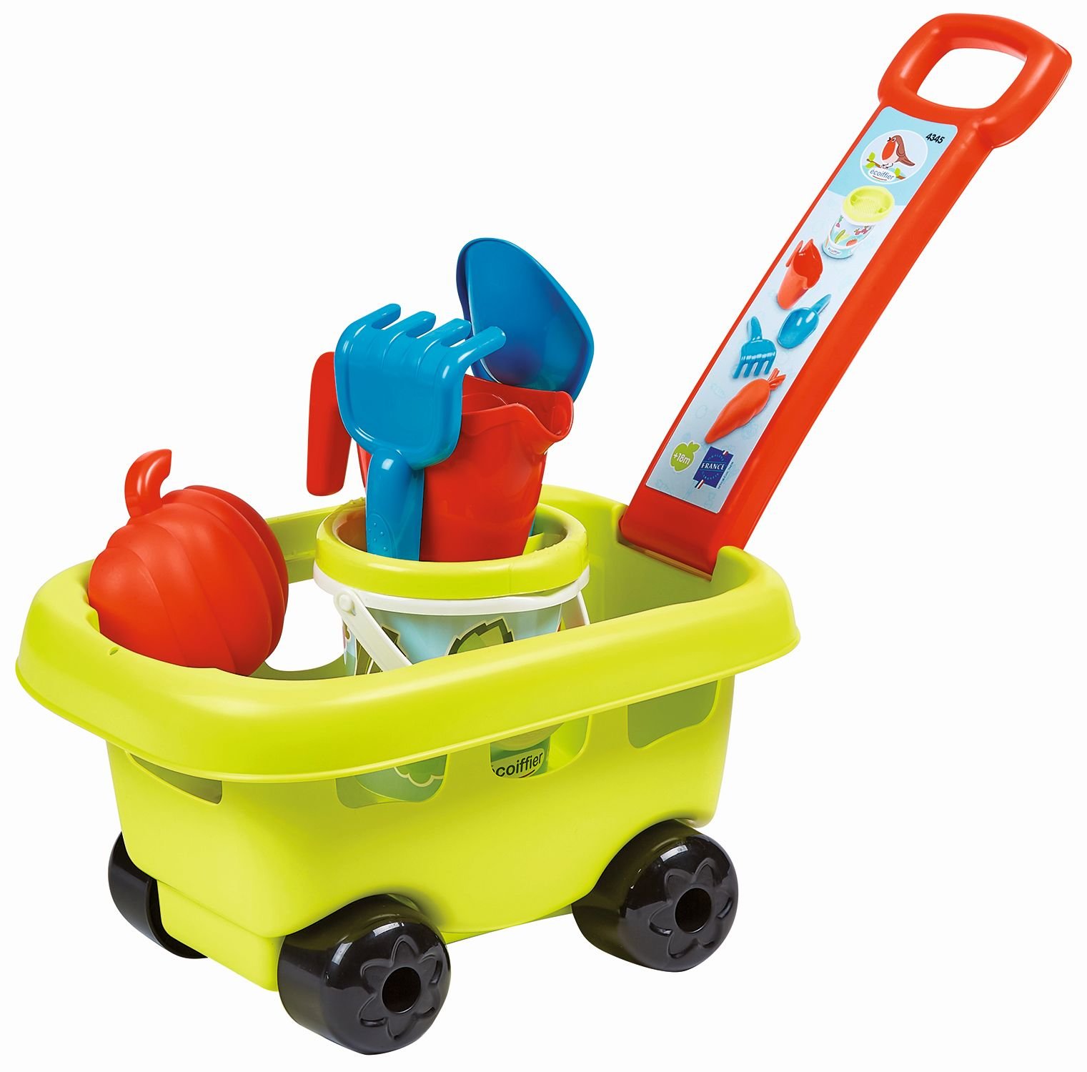 Ruční zahradní vozík s příslušenstvím v kyblíčku. S kyblíčkem na písek, sítem, konvičkou, lopatkou, hrabičkami a formičkou na písek. Vozík se snadno ovládá díky praktickému táhlu. Rozměry produktu (DxŠxV): 31 x 19 x 17,5 cm. prečítať celé