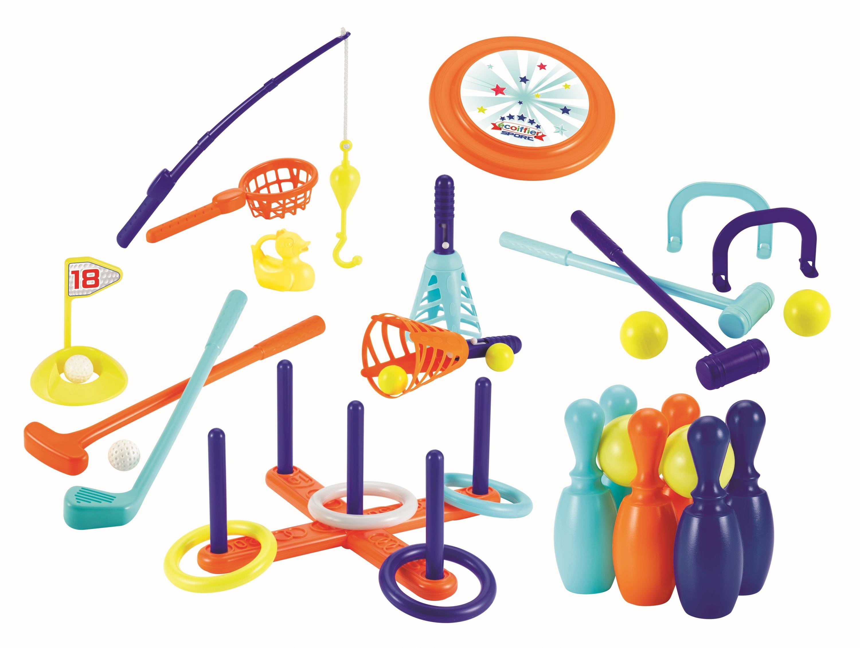 Sada 7 her vhodných do interiéru i exteriéru - frisbee, kroket, chytání rybiček, golf, chyť míček, kroužky na kříž a kuželky. Vše plastové, vyrobeno ve Francii. prečítať celé