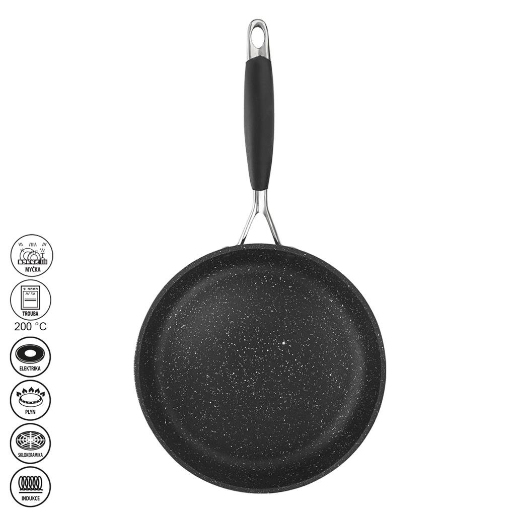 Pánev STONER Vás překvapí svými jedinečnými užitnými vlastnostmi. Její hrubý povrch je ideální pro přípravu steaků i jiných dobrot. Olej nebo výpek se totiž díky zvrásněnému povrchu s charakterem hrubého neleštěného kamene lépe dostane pod připravované potraviny, suroviny jsou rovnoměrně...