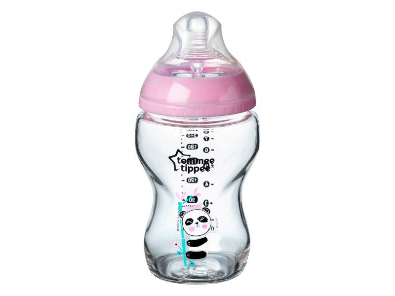Kojenecká láhev C2N 250ml skleněná potisk Pink, 0m+