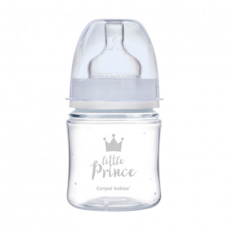 Fľaša Canpol babies ROYAL BABY s objemom 120 ml je navrhnutá tak, aby sa ľahko plnila, umývala a držala pri kŕmení. Vďaka širokému hrdlu môžete jednoducho nalievať aj čistiť fľaštičku, zatiaľ čo presná stupnica vám pomôže presne sledovať množstvo vypitého mlieka či iného nápoja. Unikátny antikolikový ventil zabraňuje tvorbe vzduchových bubliniek v tekutine, čím znižuje prehĺtanie vzduchu a následnú plynatosť u vášho dieťatka.