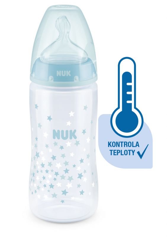NUK novinka! - Kontrola teploty pomáhá rodičům dosáhnout optimální teploty a zajistit tak bezpečné krmení jejich dítěte Teplota obsahu láhve změní její barvu: pokud je pokrm příliš horký, modrá kontrolka se změní na bílou Ideální pro dětskou čelist, savička z obzvlášť měkkého silikonu, 0-6 měsíců...