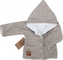 Pletený, oboustranný svetřík, kabátek s kapucí, béžová-bílá; 56 (1-2m)