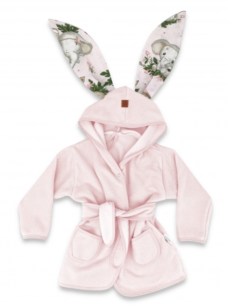 Župan s oušky může úspěšně nahradit ručník nebo osušku. Dítě v ní zabalené se bude cítit bezpečně a pohodlně. Župan má roztomilá ouška, malé kapsičky a pásek na zavazování. Díky všité gumičce pěkně sedí.