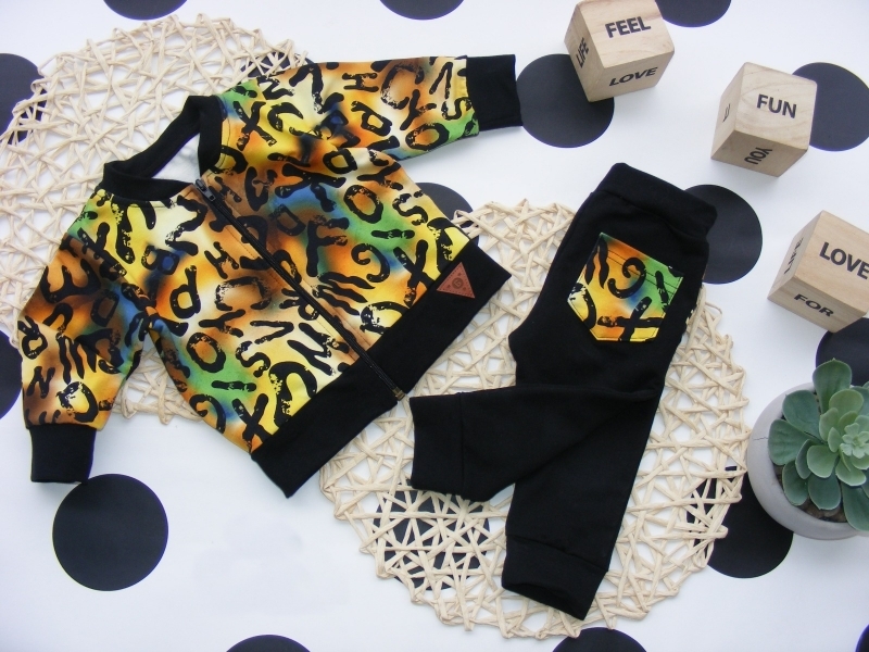 G-baby Stylová bavlněná tepláková souprava Písmenka - žlutá/černá; 68 (3-6m)