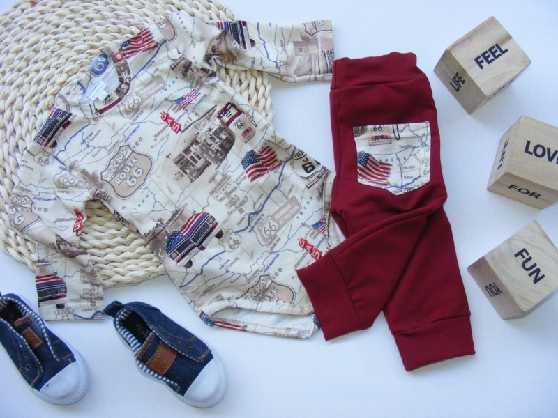 G-baby 2-dílná sada body dl. rukáv, tepláčky Route 66 - béžová/bordo; 68 (3-6m)