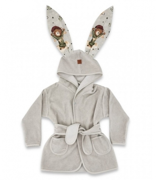 Župan s oušky může úspěšně nahradit ručník nebo osušku. Dítě v ní zabalené se bude cítit bezpečně a pohodlně. Župan má roztomilá ouška, malé kapsičky a pásek na zavazování. Díky všité gumičce pěkně sedí.